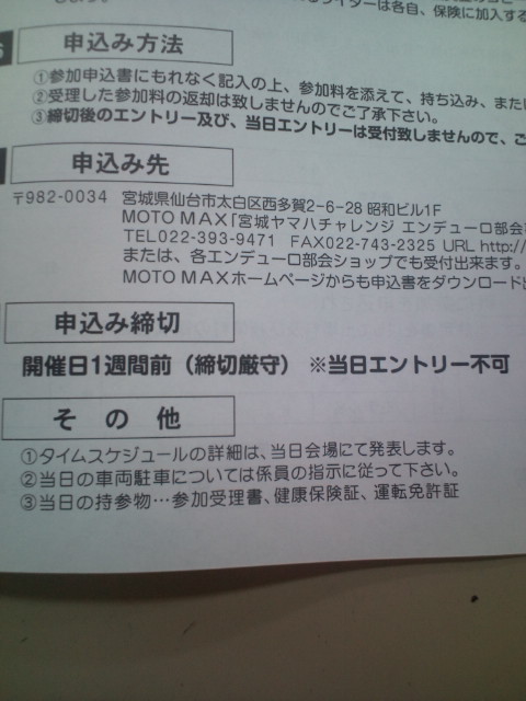 チャレンジエンデューロ! BIKARS2012年6月1日 Blogチャレンジエンデューロ!にコメントする 6月10日はチャレンジエンデューロ今年の第一戦だぜ!!…っつう事は来週な訳で、締め切りは今週の日曜日までじゃん(@_@)。忘れてたライダーは、それ急げーー!! 共有:クリックして Twitter で共有 (新しいウィンドウで開きます)Facebook で共有するにはクリックしてください (新しいウィンドウで開きます) 関連